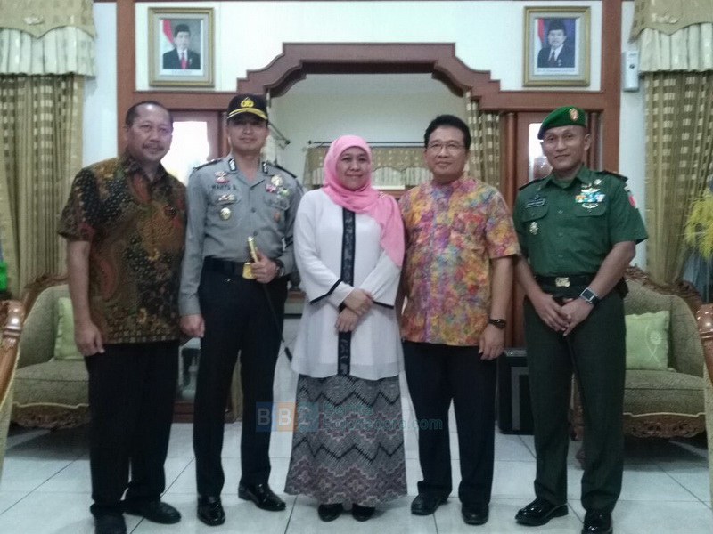 Bojonegoro Kota - Kapolres Bojonegoro AKBP Wahyu S Bintoro SH SIK MSi bersama Forkopimda mendampingi kunjungan kerja Menteri Sosial Republik Indonesia Dra Hj Khofifah Indhar Parawansa dan rombongan dalam rangka Penyaluran Bantuan Sosial Non Tunai Program Keluarga Harapan (PKH) dan Bantuan Hibah Dalam Negeri di Pendapa Malowopati Pemkab Bojonegoro, Minggu (05/03/2017) sore pukul 15.00 WIB.