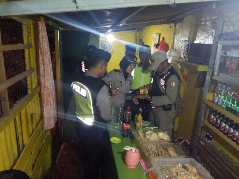"Selanjutnya patroli di Warung Kopi di belakang BRI Banjarejo dengan Pemilik RW (51) warga Jalan R. Sunjani Gg. Baru Kelurahan Banjarejo menemukan 3 Botol Arak Jawa berisikan 4,5 liter dan 2 Botol Anggur Kolesom 1,2 liter,” terang Kasat Binmas.