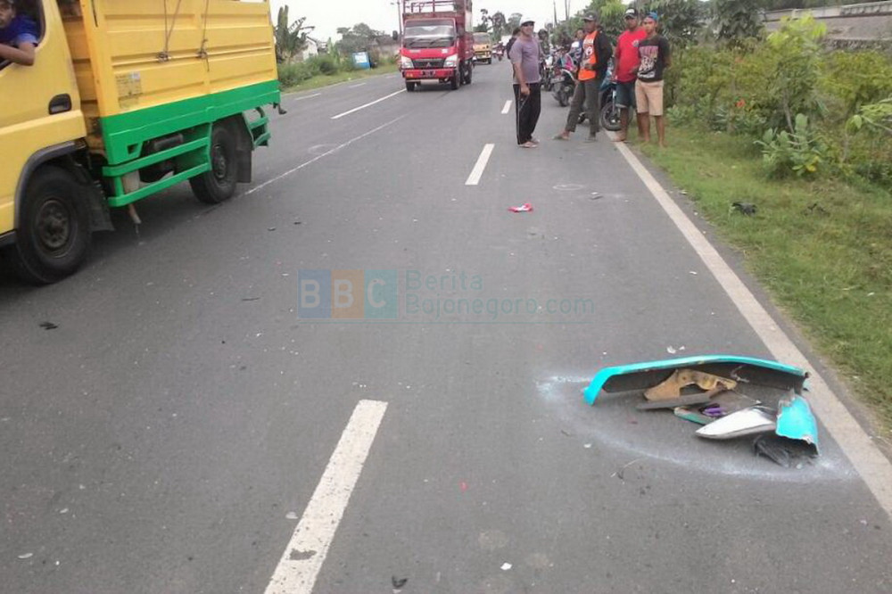Kalitidu- Eka Enang Sugiarto (24) warga Desa Tinawun Kecamatan Malo Kabupaten Bojonegoro, harus meregang nyawa, setelah sepeda motor yang dikendarainya tertabrak truk yang berjalan dari arah berlawanan, di jalur Bojonegoro - Cepu, tepatnya di jalan raya turut wilayah Desa Mayangrejo Kecamatan Kalitidu Kabupaten Bojonegoro, pada Rabu (26/04/2017) sekira pukul 13.00 WIB siang tadi. Korban mengalami luka yang cukup serius pada bagian wajah, setelah kepalanya terbentur bak truk yang menabraknya.