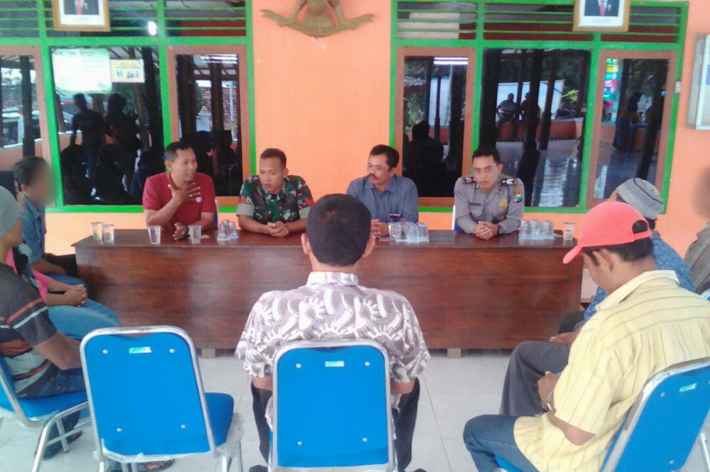 Kedewan - Bhabinkamtibmas Desa Hargomulyo Kecamatan Kedewan, Brigadir Sumarno, bersama tiga pilar, bertempat di Balai Desa Hargomulyo Kecamatan Kedewan, pada Kamis (27/04/2017) sekira pukul 09.15 WIB kemarin pagi, lakukann upaya mediasi guna mendamaikan dua orang yang masih ada hubungan saudara. Keduanya berseteru setelah salah satu dari mereka menuduh yang lain, sebagai pelaku pencurian kendaraan bermotor.