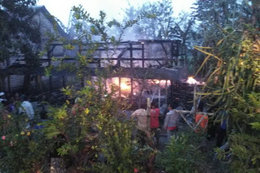 Saat sampai di rumah korban, dapur rumah korban sudah terbakar, sehingga saksi langsung mendobrak pintu rumah korban dan membangunkan dua orang anak korban yg masih tidur di dalam kamar, kemudian datang warga sekitar untuk memadamkan api. Namun api sangat cepat membakar rumah korban beserta isinya.