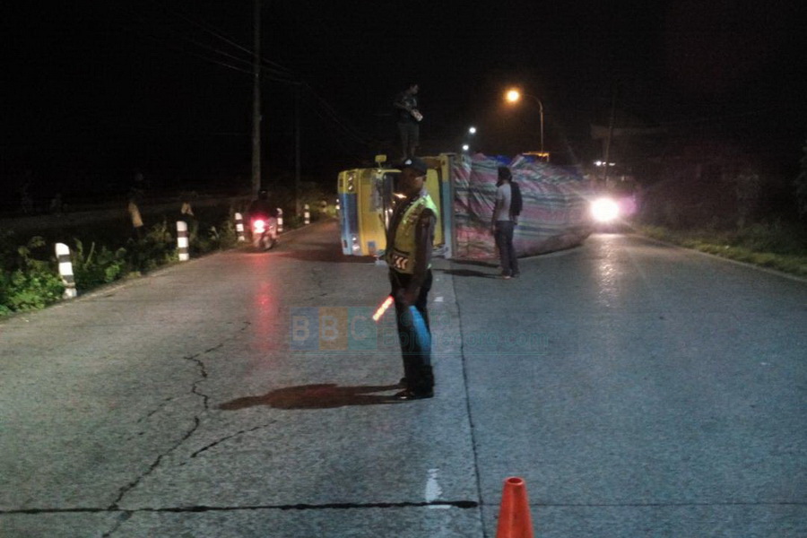 “Sekitar pukul 20.00 WIB tadi mas, truk yang terguling sudah berhasil di evakuasi” ujar Kapolsek Kalitidu melalui sambungan telepon seluler. (her/inc)