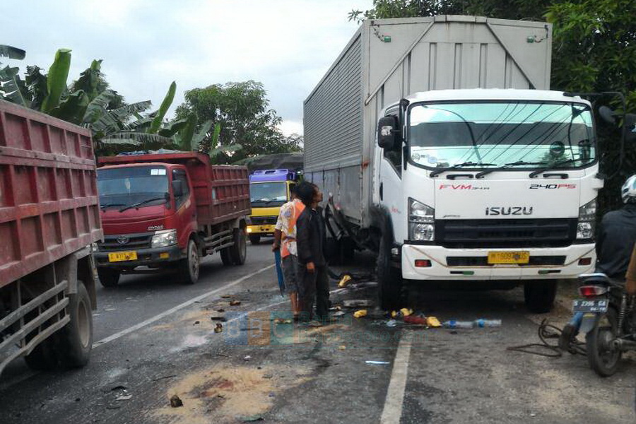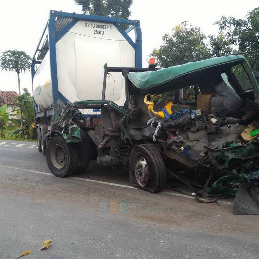 Tuban - Kecelakaan yang melibatkan 3 unit truk terjadi di jalur pantura Tuban - Bulu, tepatnya di kilometer 38-39, turut wilayah Desa Bogorejo Kecamatan Bancar Kabupaten Tuban, pada Sabtu (06/05/2017) sekira pukul 04.00 WIB pagi hari tadi, diduga karena pengemudi truck tangki trailler mengantuk, sehingga kendaraannya yang bertubrukan dengan truk tronton dan truk box tronton, yang berjalan dari arah berlawanan, akibatnya truck tangki trailler mengalami kerusakan cukup parah serta pengemundinya mengalami luka dan segera dilarikan ke rumah sakit.