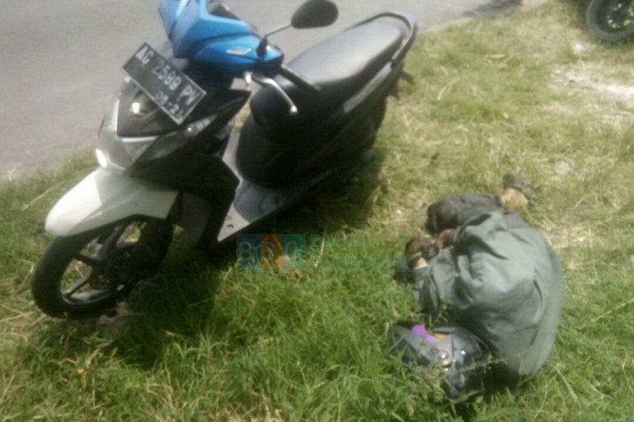 Sementara, berdasarkan hasil pemeriksaan luar, korban diketahui memakai helm warna hitam, kaca mata, jaket, baju batik coklat, celana panjang hitam, sandal slop hitam.