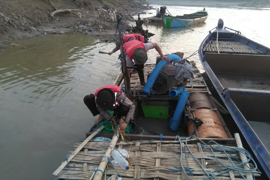 Setelah tiba di lokasi, lanjut Kasat Sabhara, anggota menemukan perahu dengan alat sedot mekanik yang ditinggal oleh pemiliknya karena mengetahui ada operasi dari aparat.
