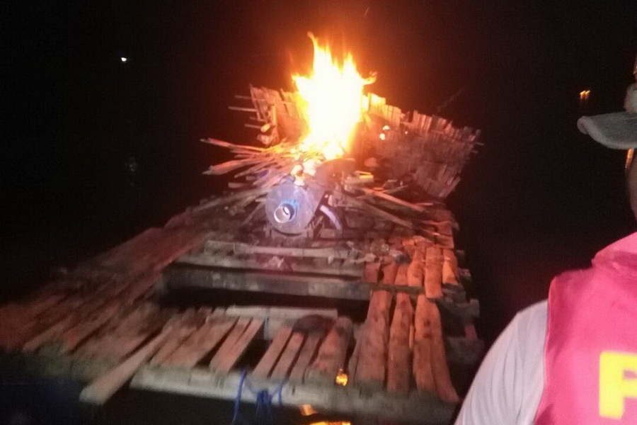 "Kami cek terlebih dahulu, setelah aman langsung saya perintahkan untuk membakar perahu berikut peralatannya dan menenggelamkannya". Imbuhnya.