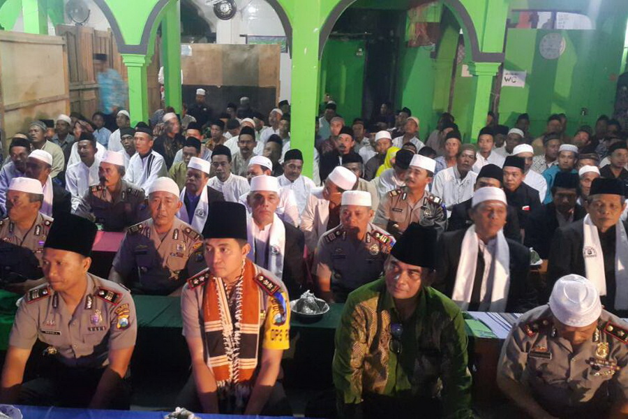 Malo - Kapolres Bojonegoro AKBP Wahyu S Bintoro SH SIK MSi, hadiri sekaligus berikan sambutan pada Pengajian Umum yang diadakan dalam rangka Haul KH Achmad Dahlan ke 46 dan Haflah Akhirussanah Santri Madrasah Diniyah Jamiyyatut Tholibin, di Pondok Pesantren (Ponpes) Jamiyyah Tholibin Desa Kemiri Kecamatan Malo, pada Kamis (18/05/2017) sekira pukul 19.30 WIB tadi malam.