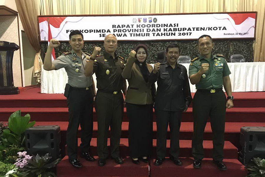 Setelah sambutan dari Gubernur Jawa Timur Sukarwo, dilanjutkan dengan pemberian materi perkembangan situasi kamtibmas oleh Kapolda Jawa Timur Irjen Pol Drs Machfud Arifin SH, serta pernyataan sikap oleh Pangdam V Brawijaya yang diwakili Kasdam V Brawijaya Brigjen TNI Agus Suhardi, Kajati Jawa Timur ES Maruli Hutagalung SH MH, Pangarmatim Laksamana Muda TNI Darwanto SH, Kepala Pengadilan Tinggi Jawa Timur Soemarsono SH Mhum, serta Wagub Jawa Timur Saifullah Yusuf, untuk menginstruksikan pejabat di Kabupaten/Kota, harus tegak lurus mendukung pernyataan sikap dan berkomitmen mempertahankan NKRI harga mati.