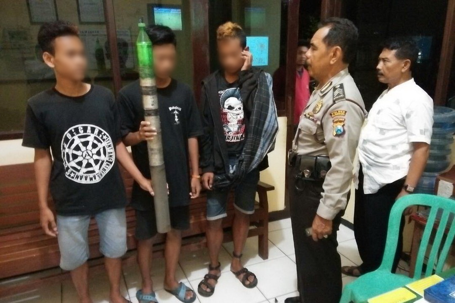 Adapun identitas pelaku, lanjut Kapolsek, adalah Mohammad Al-Adiyay Azizi (16), Alfami Ardiansyah (16) dan Ahmad Akbar Romadhon (16), ketiganya berstatus pelajar, warga Desa Simo Kecamatan Soko Kabupaten Tuban. “Satu buah mercon bumbung berukuran besar, disita petugas sebagai barang bukti,” lanjutnya.