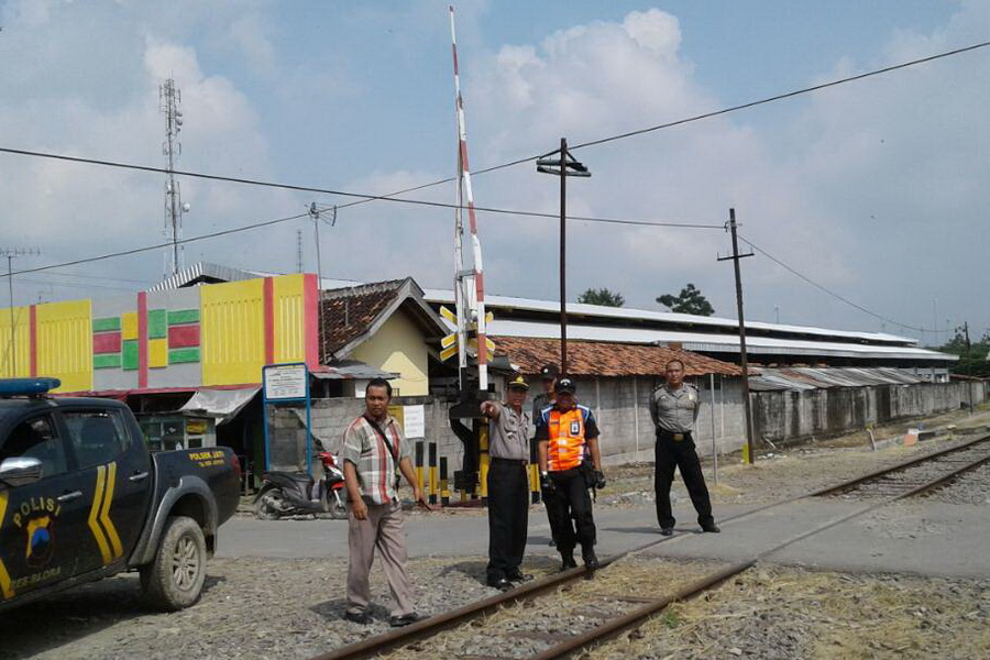 BLORA- Petugas Kepolisian Polsek Jati Polres Blora, bersama petugas dari PT Kereta Api Indonesia (PT KAI), pada Rabu (07/06/2017) mengintensifkan pemeriksaan kondisi rel kereta api dan palang pintu perlintasan kereta api, di jalur lintas utara, menjelang musim mudik lebaran Idul Fitri 1438 H. Pemeriksaan dilakukan untuk mengantisipasi kemungkinan adanya sabotase dan gangguan keamananan.