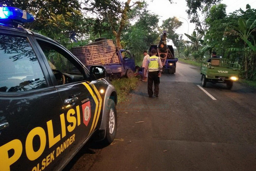 Dander - Kecelakaan tunggal terjadi di jalur Bojonegoro-Nganjuk, tepatnya di jalan raya di depan gudang beras, turut wilayah Desa Growok Kecamatan Dander Kabupaten Bojonegoro, pada Jumat (09/06/2017) sekira pukul 03.30 WIB tadi pagi. Mobil Suzuki Carry pikap tergelincir lalu menabrak pohon penghijauan di pinnggir jalan. Akibatnya pengemudi dan penumpang mengalami luka-luka dan harus mendapat perawatan di rumah sakit.