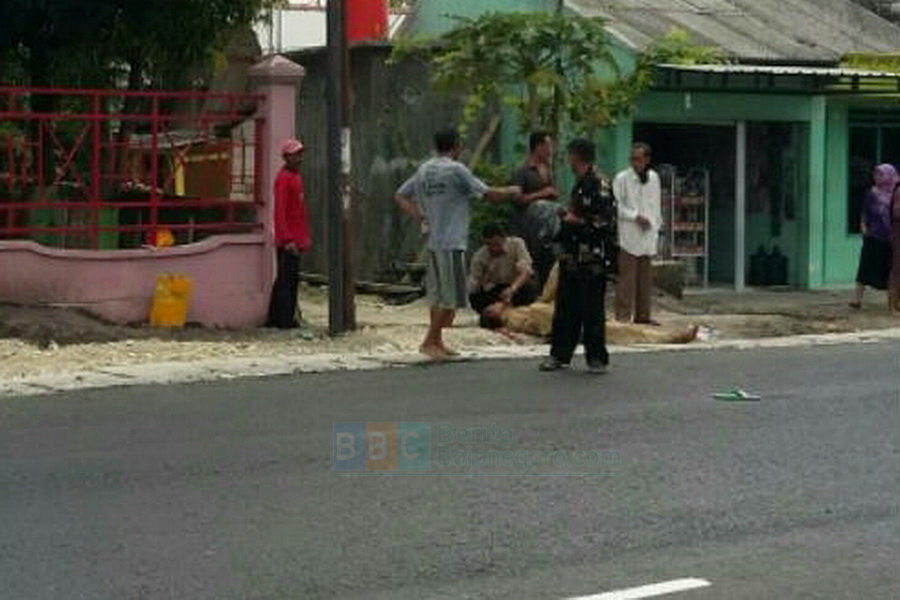 Kurang Konsentrasi, Honda CB Tabrak Penyeberang Jalan di Kalitidu, 2 orang Luka-Luka