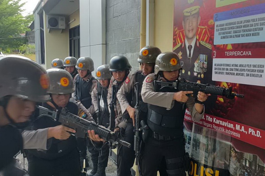"Ini merupakan latihan penanggulangan terorisme, supaya anggota dapat memahami dan mampu menghadapi saat ada serangan teroris di wilayah Bojonegoro," terang AKP Syabain. (her/moha)
