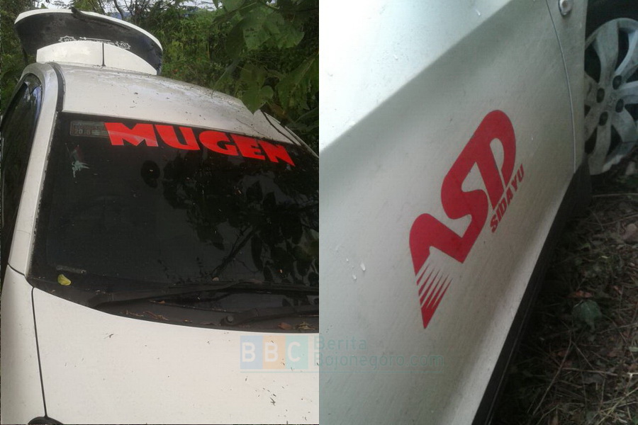 Adapun ciri-ciri mobill, warna putih, pada kaca depan atas terdapat stiker warna merah bertuliskan kata “MUGEN” dan di pintu depan mobil, tertulis logo atau tulisan “ASD SIDAYU”.