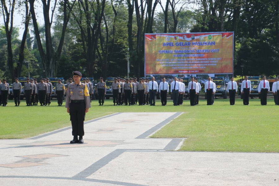 Bojonegoro - Kapolres Bojonegoro AKBP Wahyu S Bintoro SH SIK MSi, usai membacakan amanat Kapolri saat memimpin Apel Gelar Pasukan Operasi Ramadniya Semeru 2017, di Alun-alun Bojonegoro pada Senin (19/06/2017) pukul 10.00 WIB pagi tadi, mengajak seluruh anggota jajaran Polres Bojonegoro dan Polsek jajaran serta personil dari instansi samping, laksanakan giat Operasi Ramadniya Semeru 2017, sebagi bagian dari ibadah.