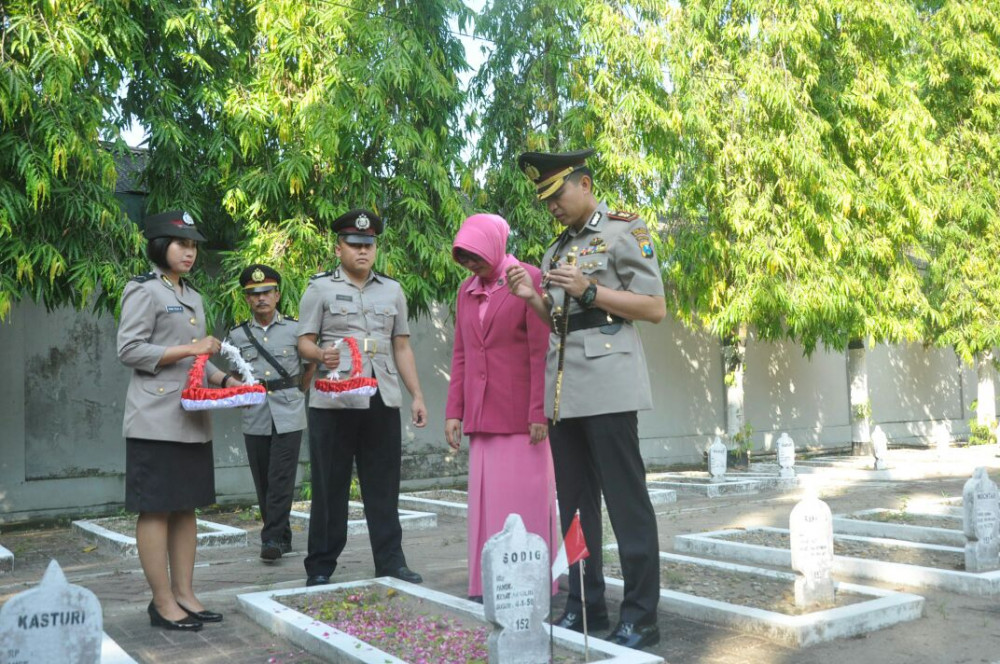 Dalam kegiatan ziarah yang juga diikuti oleh seluruh pejabat Polres Bojonegoro, Perwira Staf, Kapolsek jajaran, anggota Polres, dan Bhayangkari tersebut, Kapolres memimpin penghormatan kepada arwah para pahlawan dan meletakkan karangan bunga sebagai tanda penghormatan kepada jasa para pahlawan yang telah gugur berjuang demi kemerdekaan bangsa Indonesia.