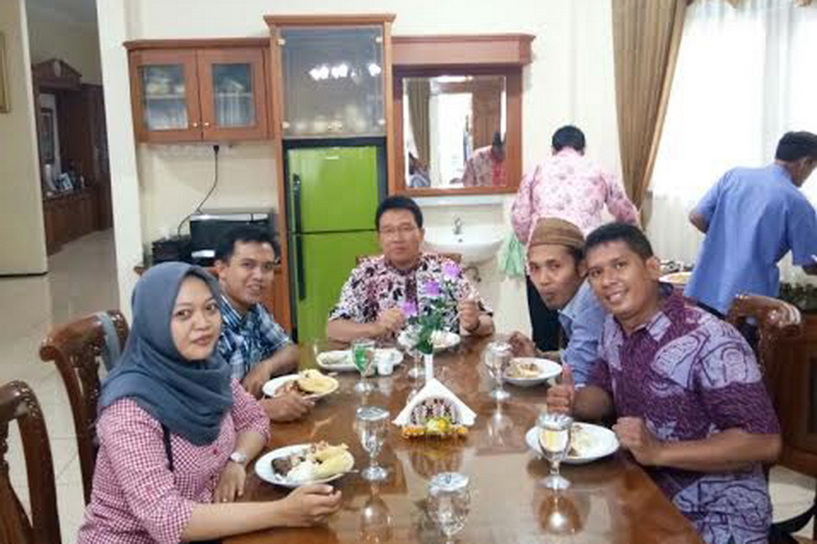 Selain saya dan rekan-rekan, ada juga kepala dinas dan camat yang ikut makan siang di ruangan itu. Saat kami datang, bukan pekerjaan sebagai bupati yang Ia tunjukkan, melainkan kebiasaan yang cukup unik, membuat sambel (nyambel).