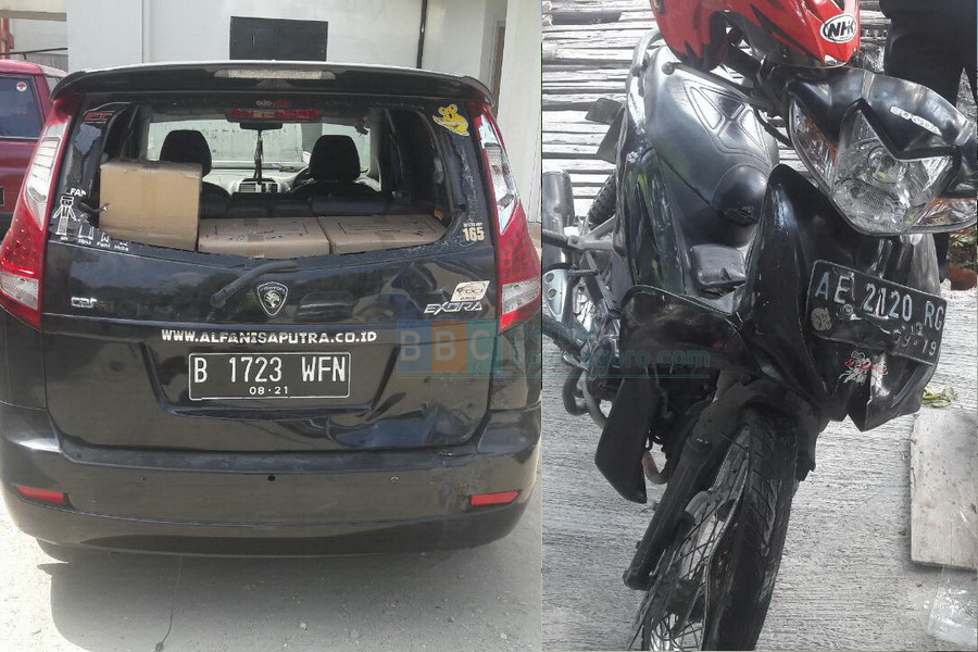 Adapun kendaraan yang terlibat kecelakaan tersebut, sepeda motor Honda Revo nomor polisi AE 2120 RC, yang dikendarai Juariyah (35), warga Desa Jimbung Kecamatan Menden Kabupaten Blora, berboncengan dengan Sukma Dhanik Nur Rohma (19), warga Dusun Mojosari Desa Sumberejo Kecamatan Margomulyo Kabupaten Bojonegoro, kontra mobil pribadi PROTON EXORA yang sedang parkir dipinggir jalan, yang dikemudikan Idris Fatchur Rizaq (38), warga Desa Kalirejo RT 017 RW 007 Kecamatan Ngraho Kabupaten Bojonegoro.