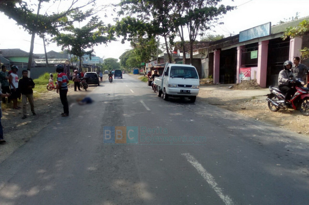 Trucuk - Kecelakaan yang mengakibatkan korban jiwa terjadi di jalan raya Bojonegoro-Jatirogo, tepatnya di jalan raya turut wilayah Desa Banjarsari Kecamatan Trucuk Kabupaten Bojonegoro, pada Sabtu (22/07/2017) sekira pukul 08.10 WIB pagi tadi. Sepeda motor Honda CBR menabrak pejalan kaki yang hendak menyeberang. Akibatnya pejalan kaki meninggal dunia di lokasi kejadian sedangkan pengendara motor mengalami luka-luka.