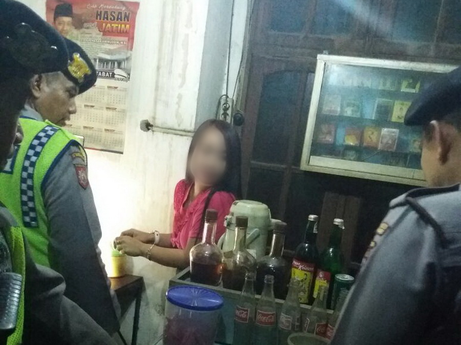 Dalam pelaksanaan razia miras tersebut, Kasat Sabhara yang dibantu oleh 6 anggota sabhara lainnya mendatangi sebuah warung yang terletak di Desa Banjarjo Kota Bojonegoro. Dari warung yang dimiliki oleh NR (38) warga Desa Sendangrejo Kecamatan Parengan Kabupaten Tuban tersebut, anggota mendapati barang bukti berupa 1 anggur Kolesom dengan kadar alkohol 17%, ukuran 200 mililiter dan 1 botol oplosan arak baceman ukuran 100 mililiter serta 1 botol oplosan anggur beras kencur ukuran 1000 mililiter. "Seluruh barang bukti langsung kami amankan dan dibawa ke kantor," imbuh Kasat Sabhara.