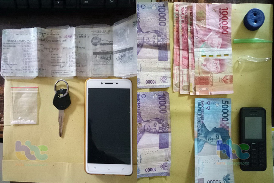 Adapun barang bukti yang didapati petugas dari pelaku FAP als SYO bin SHT (27) berupa uang tunai Rp 470 ribu, 1 (satu) unit HP warna hitam merk Nokia tipe 105, 1 (satu) buah pipet kaca yang telah dimodifikasi, 1 (satu) buah tutup botol Aqua warna biru dan terdapat dua lubang serta 1 (satu) buah sedotan kecil yang sudah dimodifikasi sebagai skrop.