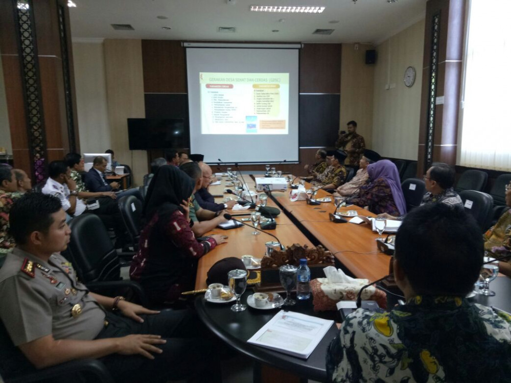 Bojonegoro Kota - Bertempat di Productive Room, lantai 7 gadung Pemkab Bojonegoro, jajaran Forpimda Kabupaten Bojonegoro sambut kedatangan Dewan Pertimbangan Presiden (Wantimpres) pada hari Kamis (03/08/2017) sekira pukul 09.00 WIB pagi tadi. Kedatangan rombongan tim Watimpres yang diketua oleh Prof Dr Abdul Malik Fadjar, bersama 5 staf Wantimpres ke Kabupaten Bojonegoro guna menghimpun informasi mengenai perkembangan pendidikan, keagamaan dan kesejahteraan rakyat di Kabupaten Bojonegoro.