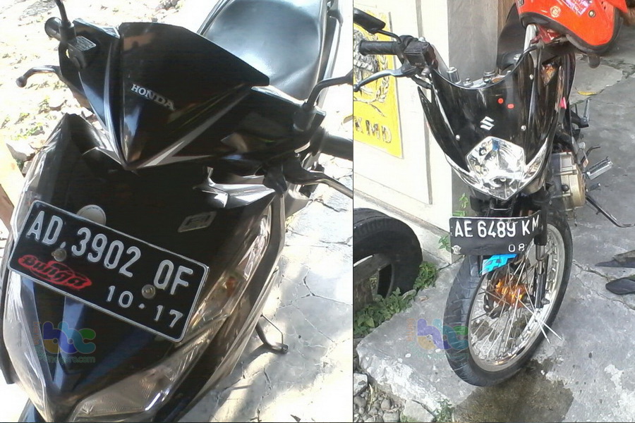 Kendaraan yang terlibat kecelakaan tersebut, sepeda motor Suzuki Satria Fu, nomor polisi AE 6489 KM, yang dikendarai Rudianto (14) berboncengan dengan Biwo (14), keduanya pelajar asal Desa Meduri RT 003 RW 005 Kecamatan Margomulyo Kabupaten Bojonegoro dengan sepeda motor Honda Vario nomor polisi AD 3902 QF, yang dikendarai Yoga Panji Asmoro (24), warga Kelurahan Kandangsapi RT 012 RW 004 Kecamatan Jenar Kota Surakarta.