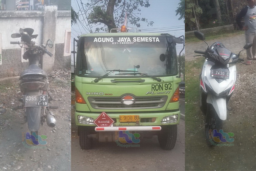 Kendaraan yang terlibat kecelakaan tersbut, sepeda motor Suzuki Smash nomor polisi S 4395 CS, yang dikendarai M Nur Hadi (36), warga Desa Butoh RT 006 RW 003 Kecamatan Sumberrejo dengan sepeda motor Honda Vario nomor polisi S 2430 C, yang dikendarai Mukowati (32), warga Desa Jamberejo RT 002 RW 001 Kecamatan Kedungadem dan kendaraan truk tangki Hino nomor polisi L 9138 UU, yang dikemudikan Sujudi (48), warga Desa Butoh RT 012 RW 005 Kecamatan Sumberrejo Kabupaten Bojonegoro.