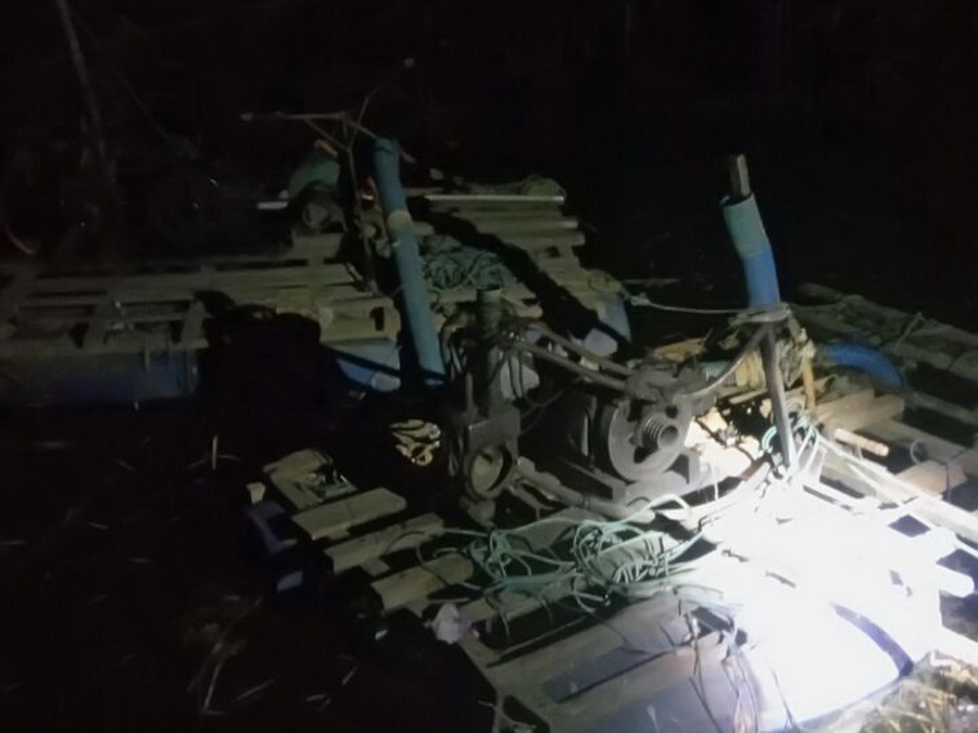 Setelah dilakukan pengecekan dan memang benar adanya, selanjutnya petugas langsung melakukan penggrebekan dan mengamankan seorang yang diketahui sebagai pemilik dari peralatan mekanik yang dipergunakan untuk melakukan kegiatan penambangan pasir di sungai Bengawan Solo. Selain itu, petugas juga mengamankan barang bukti berupa 1 (satu) unit mesin pontoon, 1 (satu) buah skrop dan uang tunai pembayaran pembelian pasir sebesar Rp 360 ribu.