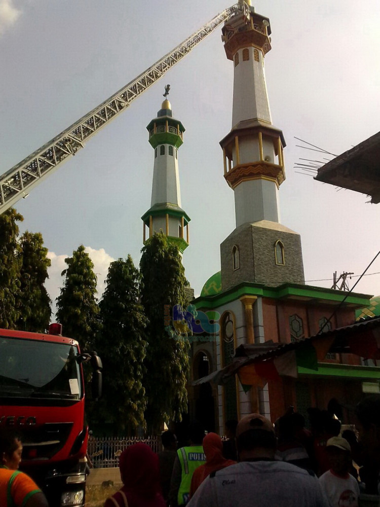 Dinas Pemadam Kebakaran Bojonegoro Evakuasi Warga Yang Pingsan di Atas Menara Masjid