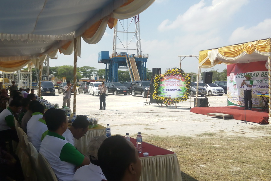 Bojonegoro Kota - Ketua Umum Himpunan Kerukunan Tani Indonesia ( HKTI ) Jendral TNI (Pur) Dr H Moeldoko S IP, pada Minggu (20/08/2017) pagi tadi, lakukan penebaran benih dan penggunaan bibit varietas M-TANI jenis M400 dan M70D, di Desa Campurejo Kecamatan Bojonegoro Kota. Kegitan tersebut dihadiri juga sejumlah pejabat dan tokoh Bojonegoro diantaranya, Dandim 0813 Bojonegoro, Kapolres Bojonegoro, Ketua DPRD Bojonegoro dan sejumlah Kepala OPD Kabupaten Bojonegoro.