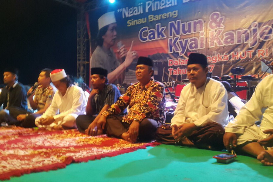 Bojonegoro - Kapolres Bojonegoro AKBP Wahyu S. Bintoro SH SIK MSi pada Selasa (29/08/2017) sekira pukul 21.00 WIB tadi malam, hadiri acara ngaji bareng bersama KH MH Ainun Najib atau yang lebih sering dijuluki Cak Nun berikut Kyai Kanjeng, di area Bendung Gerak tepatnya di Lapangan Desa Padang Kecamatan Trucuk Kabupaten Bojonegoro.