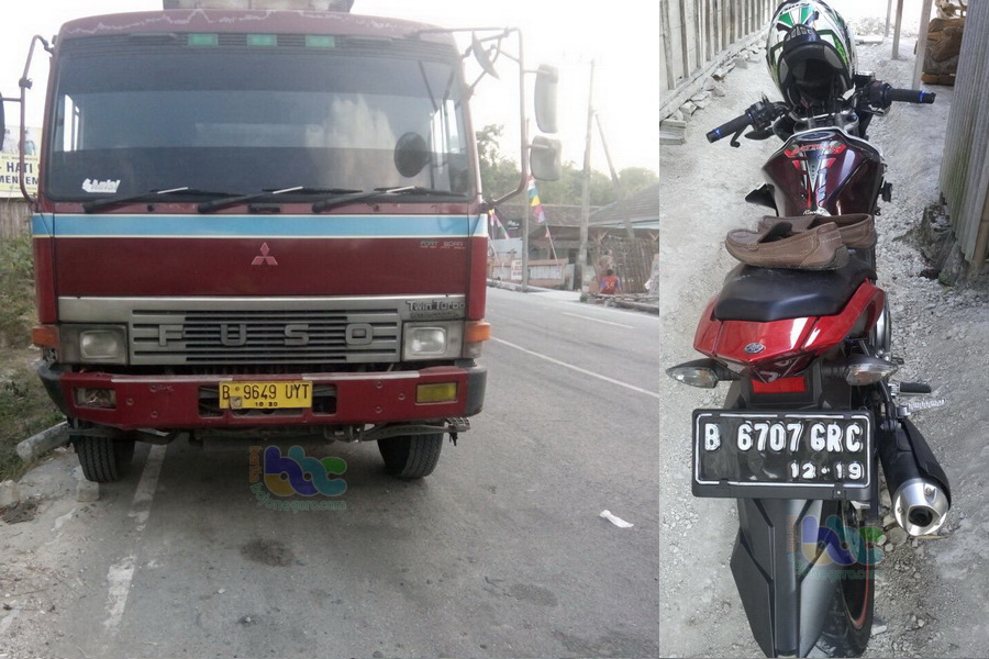Kendaraan yang terlibat kecelakaan tersebut truk Mitsubishi tronton nomor polisi B 9649 UYT, yang dikemudikan Budiyanto (40), warga Dusun Balong Asem Desa Kedep RT 005 RW 003 Kecamatan Tarokan Kabupaten Kediri dengan sepeda motor Yamaha Vixion nomor polisi B 6706 GRC, yang dikendarai Giyono (32), warga Desa Siegang Bendungan RT 001 RW 004 Kecawas Cawas Kabupaten Klaten Provinsi Jawa Tengah.