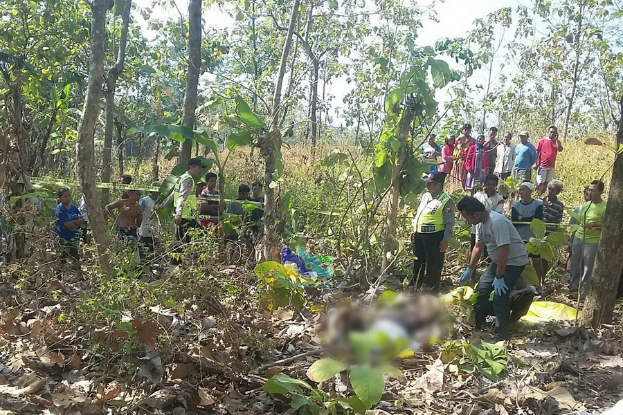 Margomulyo - Sadir (62), warga Dusun Kalimojo Desa Margomulyo RT 004 RW 001 Kecamatan Margomulyo Kabupaten Bojonegoro, pada Jumat (01/09/2017) sekira pukul 07.30 WIB pagi tadi, ditemukan dalam posisi terlentang dan sudah dalam keadaan meninggal dunia, di kawasan hutan petak 12B, RPH Kaligede BKPH Kedawak Utara KPH Ngawi, turut wilayah Dusun Kalimojo Desa Margomulyo Kecamatan Margomulyo. Korban pertama kali ditemukan oleh tetangganya bernama Surono (66), yang saat itu hendak pergi ke kebun.