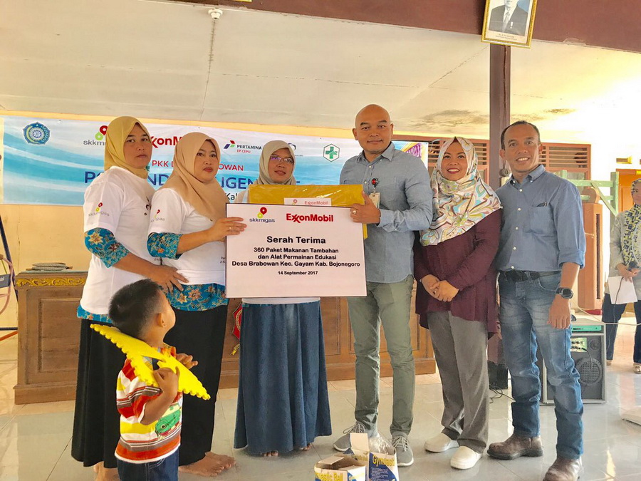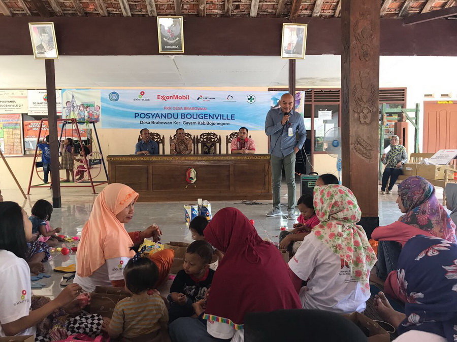 Bojonegoro (Gayam) - Kontraktor pemerintah untuk Lapangan minyak Banyu Urip, ExxonMobil Cepu Limited (EMCL) menggelar sosialisasi keselamatan kepada ibu-ibu PKK Desa Brabowan, Kecamatan Gayam, Kamis (14/9/2017). Sosialisasi yang dikemas dalam kegiatan posyandu itu, dihadiri kepala Puskesmas Kecamatan Gayam, Kepala Desa dengan puluhan ibu-ibu dengan balita masing-masing.