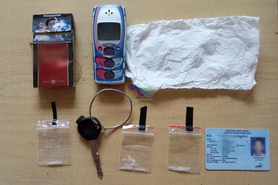 Masih menurut keterangan AKP Mashadi, selain 3 (tiga) bungkus plastik klip kecil yang diduga berisi sabu, petugas juga mengamankan 1 (satu) bungkus rokok, 1 (satu) lembar tisue warna putih, 1 (satu) buah celana pendek jeans warna biru, 1 (satu) unit HP merk Nokia type 2300 warna biru hitam dan 1 (satu) unit sepeda motor Honda Beat warna putih biru, beserta STNK dan kunci kontak.