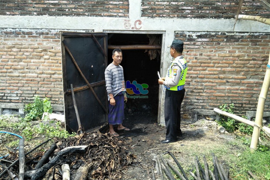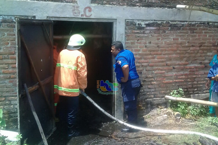 Bojonegoro (Sukosewu) - Gudang oven (pengeringan) tembakau, milik Ahmad Yusuf (49), warga Desa Sukosewu RT 001 RW 001 Kecamatan Sukosewu Kabupaten Bojonegoro, pada Minggu (08/10/2017) sekira pukul 11.35 WIB siang tadi, terbakar. Saat pertistiwa tersebut terjadi, oven dalam kondisi sedang dioperasikan untuk mengeringkan daun tembakau sejumlah kurang lebih 5 ton. Tidak ada korban jiwa dalam peristiwa tersebut, diduga penyebab kebakaran karena ada daun tembakau yang berada di atas perapian terjatuh sehingga api membesar dan membakar daun tembakau yang lain. Akibat kejadian tersebut korban diperkirakan mengalami kerugian sebesar Rp 30 juta.