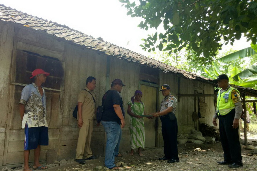 Bojonegoro (Tambakrejo) - Seorang ibu tua bernama Karti warga Dusun Glagah Desa Mulyorejo Kecamatan Tambakrejo Kabupaten Bojonegoro, terlihat sempat kaget saat didatangi anggota polisi dan perangkat desa setempat pada Selasa (17/10/2017) kemarin sore.