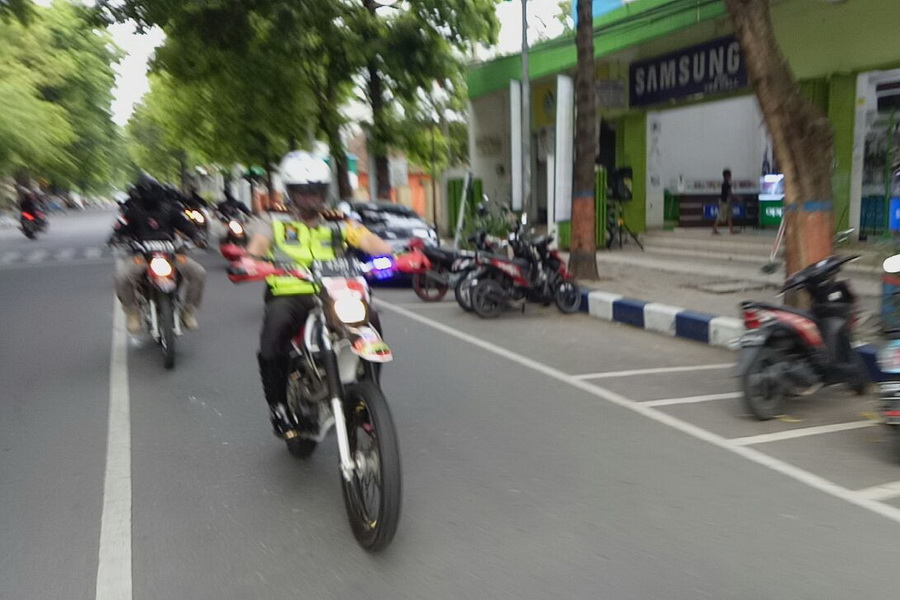 Dengan mengendarai motor trailnya, Kapolres berangkat bersama tim Panther menuju SMT dari Rumah Dinas Kapolres di jalan Panglima Sudirman Kota Bojonegoro.