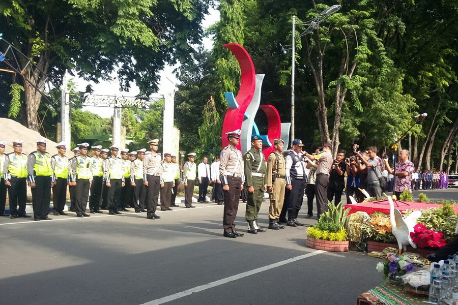 Bojonegoro Kota - Ratusan aparat gabungan dari Polres Bojonegoro, Dinas Perhubungan (Dishub), Satpol-PP, Sat Brimob dan Kodim 0813 Bojonegoro, pada Rabu (01/11/2017) pukul 08.00 WIB pagi, bertempat di Jalan Mas Tumapel depan pendapa Pemkab Bojonegoro laksanakan apel gelar pasukan jelang Operasi Zebra Semeru 2017, yang akan dilaksanakan mulai tanggal 01 November - 14 November 2017, serentak di seluruh Indonesia. Operasi ini dilaksanakan sebagai cipta kondisi Operasi Lilin tahun 2017 dan tahun baru 2018.
