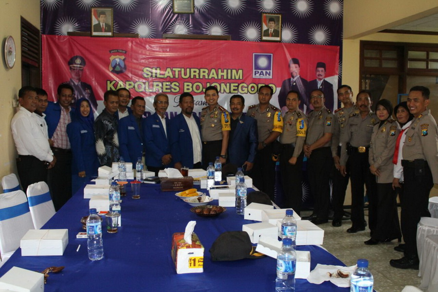Kapolres Bojonegoro bersama rombongan diterima langsung oleh Ketua DPD PAN Kabupaten Bojonegoro, Suyuthi. Dalam sambutannya Suyuthi menyampaikan ucapan terima kasih kepada Kapolres dan rombongan yang telah berkenan mengunjungi Kantor DPD PAN Kabupaten Bojonegoro, mengingat semenjak DPD PAN menempati kantor tersebut, baru pertama kali ini mendapat kunjungan dari Kapolres Bojonegoro.