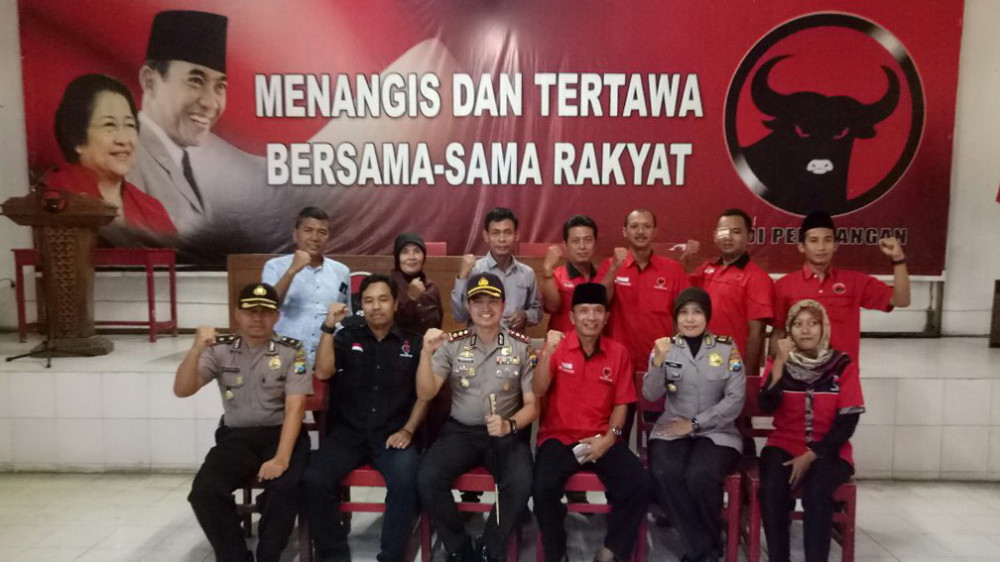 Dengan mengajak serta seluruh Pejabat Utama (PJU) Polres Bojonegoro, kehadiran Kapolres bersama rombongan diterima langsung oleh Ketua DPC PDI-P Bojonegoro Budi Irawanto MPd beserta pengurus DPC PDI Perjuangan Kabupaten Bojonegoro.