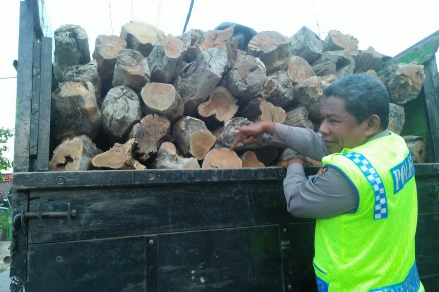 “Selanjutnya truk tersebut diberhentikan petugas dan ternyata benar truk tersebut sedang mengangkut kayu jati hasil hutan tanpa dilengkapi dengan surat-surat yang sah.” lanjut Kapolsek.