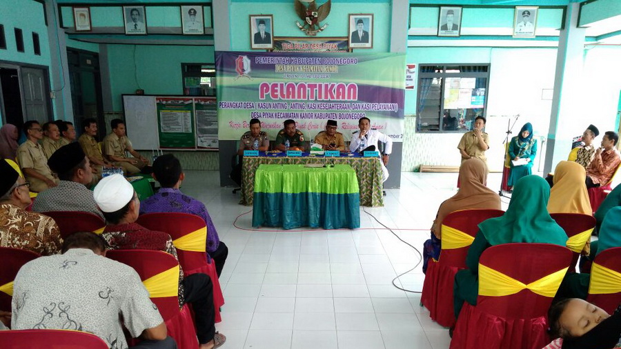 Adapun perangkat desa baru yang dilantik adalah, Ilham Fajar Surono yang menjabat Kasi Kesejahteraan, Ali Mahmudin SP yang menduduki jabatan Kasi Pelayanan dan Zumrotus Sholichah AMa, yang menduduki jabatan Kepala Susun Anting-anting Desa Piyak Kecamatan Kanor.