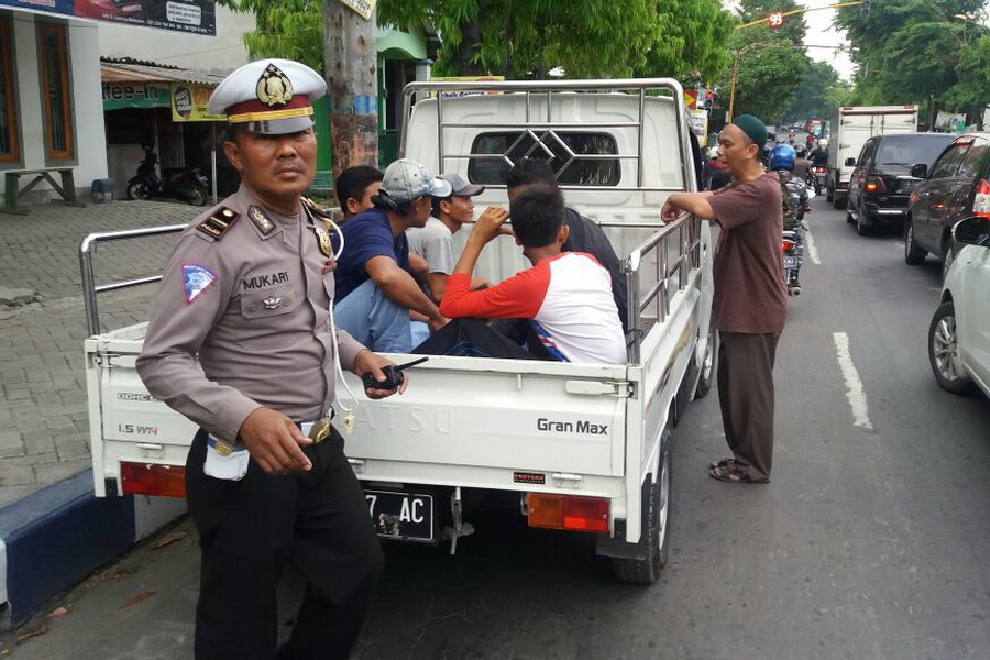 "Berdasarkan laporan anggota dilapangan, masih ditemui kendaraan bak terbuka untuk memuat orang. Selain itu didapati kendaraan yang memuat bahan material melebihi dimensi kendaraan," jelas AKP Aris.