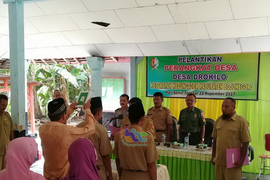 Berdasarkan data yang dihimpun awak media ini, pada Senin (13/11/2017), di Desa Drokilo Kecamatan Kedungadem, Pelantikan dilaksanakan langsung oleh Kepala Desa Drokilo, Sutrisno. Perangkat desa yang dilantik adalah Cipto Budi Cahyono, yang menjabat sebagai Kasun Kedungdowo, Rudi Giyantoro, yang menjabat sebagai Kasi Perencanaan dan Eko Abriyanto, yang menjabat sebagai Kasi Pelayanan Umum.
