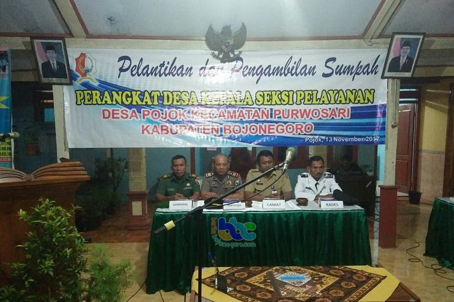 Untuk Desa Pojok Kecamatan Purwosari, Kepala Desa Pojok, Agung Harianto juga laksanakan pelantikan perangkat desa baru. Adapun perangkat desa yang dilantik adalah, Marsudi Wibowo SPd, yang menjabat sebagai Kasi Pelayanan. Pelantikan juga langsung dilaksanakan oleh Kepala Desa Pojok Kecamatan Purwosari.