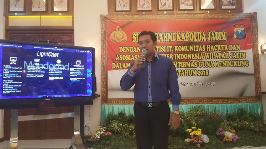 Kapolda Jatim dalam sambutannya mengucapkan terima kasih atas kehadiran Praktisi IT, Komunitas Hacker dan Asosiasi Media Siber Indonesia.