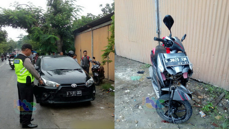 Hindari Pejalan Kaki Pemotor di Trucuk Tertabrak Mobil