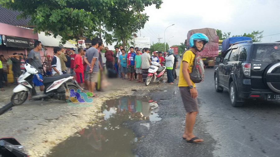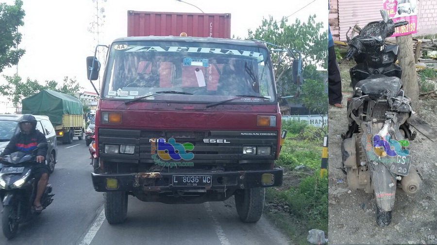 Tuban (Widang) - Pengendara sepeda motor bernama Supriyono (41) warga Desa Semanding Barat RT 003 RW 004 Kecamatan Semanding Kabupaten Tuban, pda Sabtu (02/12/2017) pukul 16.10 WIB sore tadi, tewas seketika setelah motor yang dikendarainya terlindas truk treiler yang melaju searah didepannya, di jalan raya Tuban Widang KM 21-22 tepatnya Desa Compreng Kecamatan Widang Kabupaten Tuban.